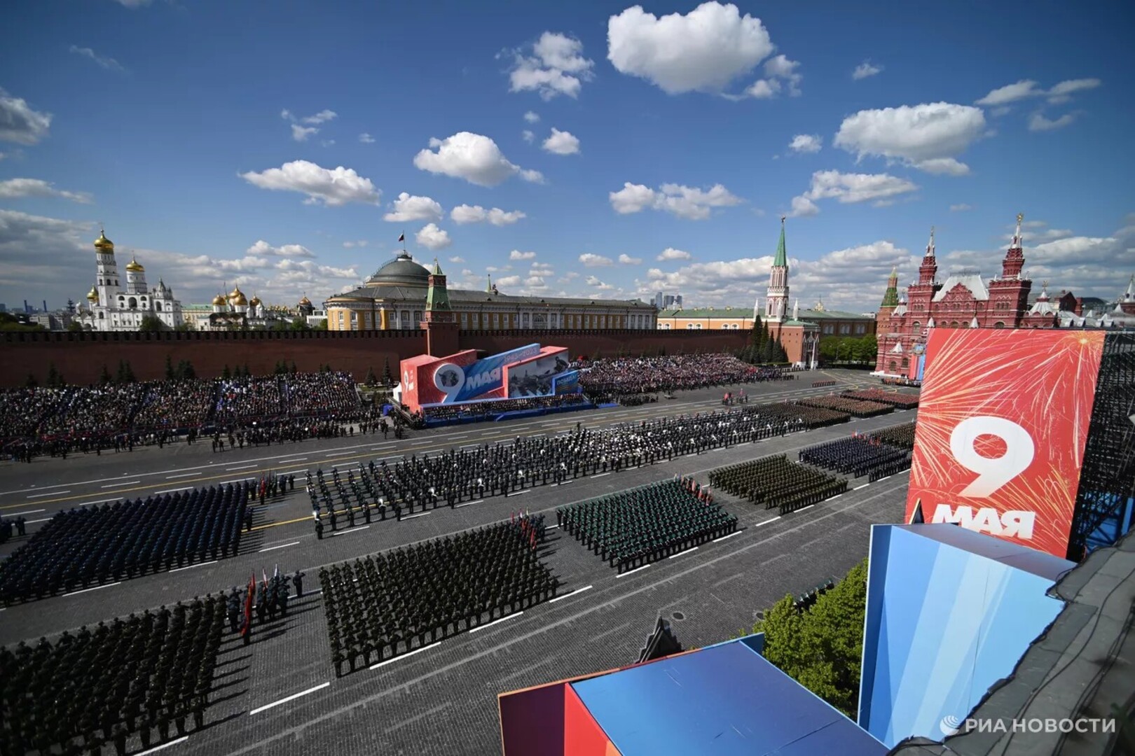 "Deveti maj je glavni dan naših proslava. Počinje ceremonijom na kojoj naš predsjednik dočekuje šefove stranih delegacija. Zatim svi zajedno odlaze na Crveni trg i zauzimaju svoja mjesta na tribinama. Tradicionalno, vojna parada počinje u 10:00 sati".