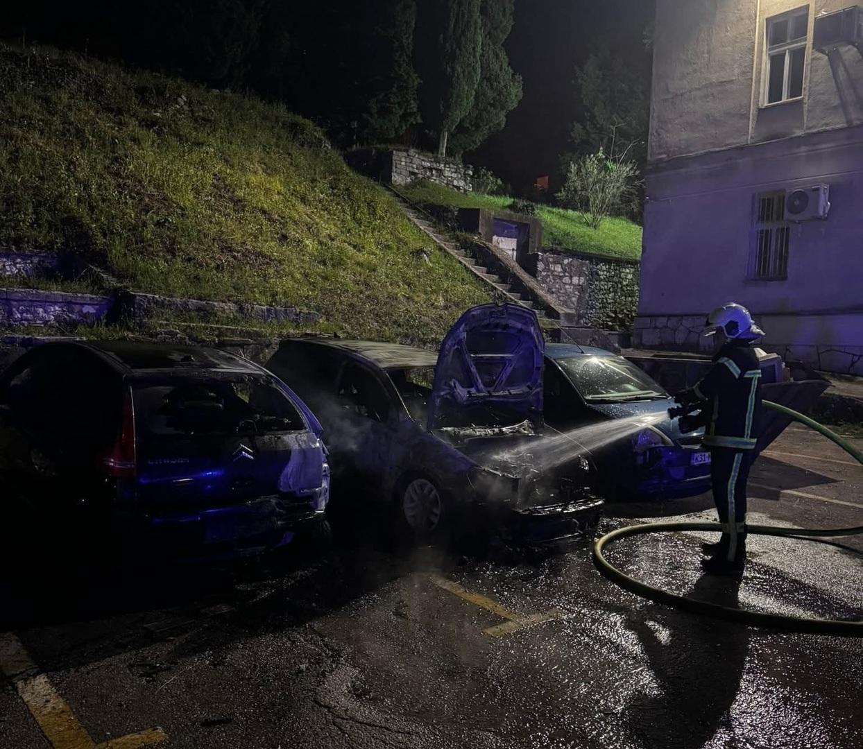 Po položaju vozila i činjenici da ih je čak šest zahvaćeno požarom, sve upućuje na namjernu paljevinu.