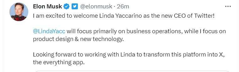 Elon Musk saopćio je da je pronašao novog izvršnog direktora koji će voditi Twitter.
