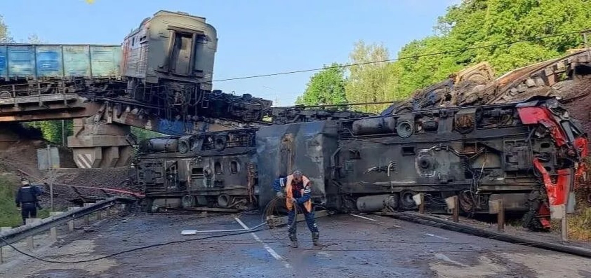 Nekoliko sati kasnije, drugi most se srušio u okrugu Železnogorsk, izazivajući iskliznuće teretnog voza i požar. Privremeni guverner Aleksandar Hinštajn izjavio je da je mašinovođa zadobio povrede nogu. Uzrok ovog rušenja još nije poznat, a sve hitne službe su angažirane na terenu.
