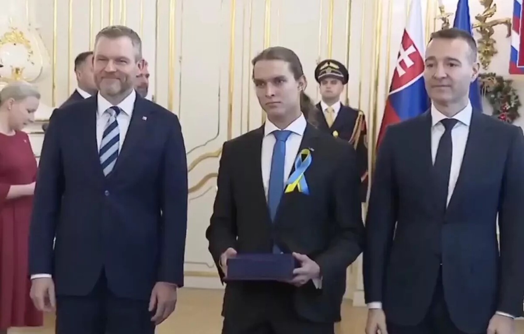 Ranije su lokalni mediji prikazali snimak ceremonije dodele nagrada pobednicima Olimpijade u Slovačkoj , na koju je jedan od školaraca došao sa žuto-plavom trakom i odbio da se rukuje sa šefom države.