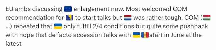 Evropska komisija i zvaničnici u Briselu nadaju se da bi ipak pregovori mogli biti otvoreni u junu, gotovo godinu dana nakon što je Evropsko vijeće prihvatilo pregovarački status Ukrajine, ali i Moldavije.