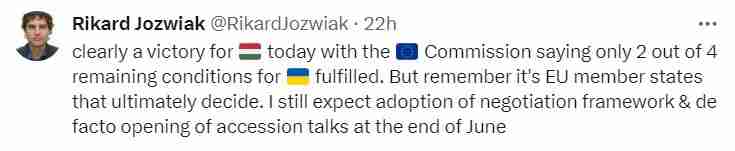 Predstavnik zvanične Budimpešte upozorio je da je Ukraina ispunila dva, od četiri postavljena preduslova.