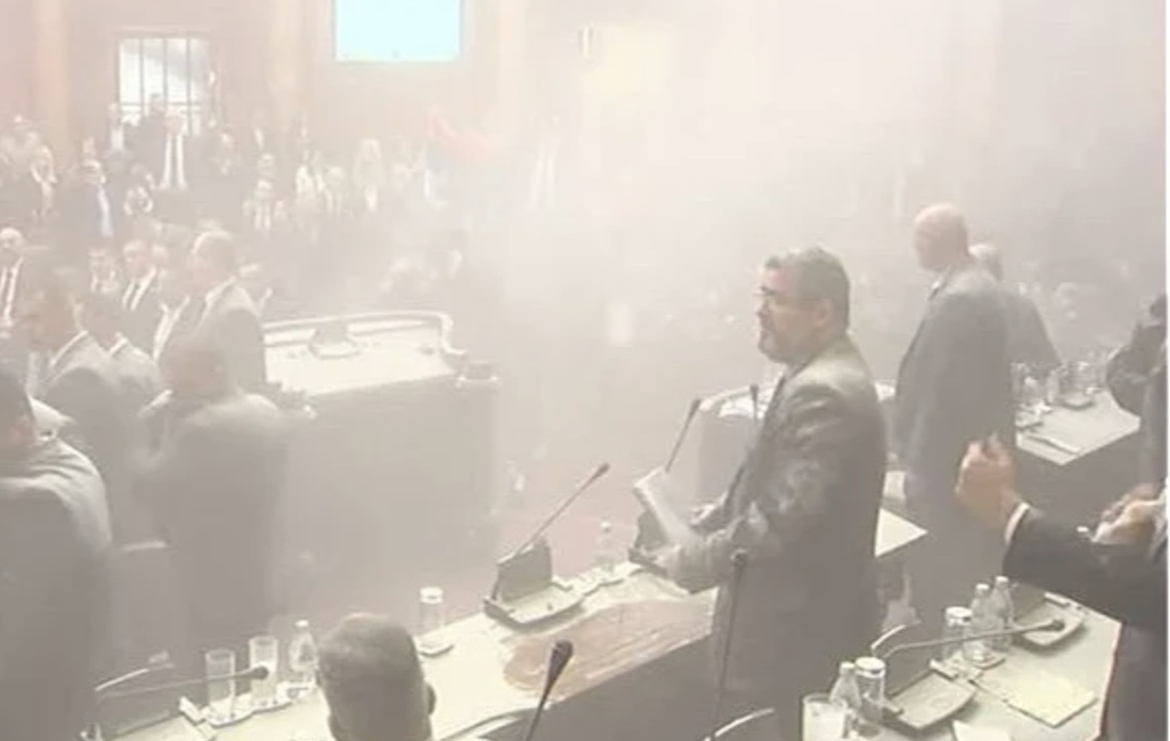 Poslanik Zeleno-lijevog fronta Radomir Lazović aktivirao je protivpožarni aparat u Skupštini.