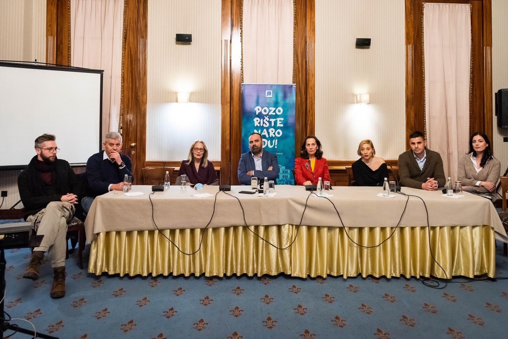 Na press – konferenciji su govorili: Vuk Miletić, rukovodilac službe za pordukciju, domaću i međunarodnu saradnju Narodnog pozorišta u Beogradu, Molina Udovički Fotez, direktorica Drame Narodnog pozorišta u Beogradu, glumice Narodnog pozorišta u Beogradu Radmila Živković, Danica Maksimović, Nela Mihailović i Vanja Ejdus, glumci Saša Torlaković, Aleksandar Srećković i Dušan Matejić i autorica izložbe „Bora Gligorović“ Dragica Gaćeša. U ime domaćina obratili su se Edina Papo, predsjednica Upravnog odbora Narodnog pozorišta Sarajevo i koreografkinja i Dino Mustaić, direktor Narodnog pozorišta Sarajevo.