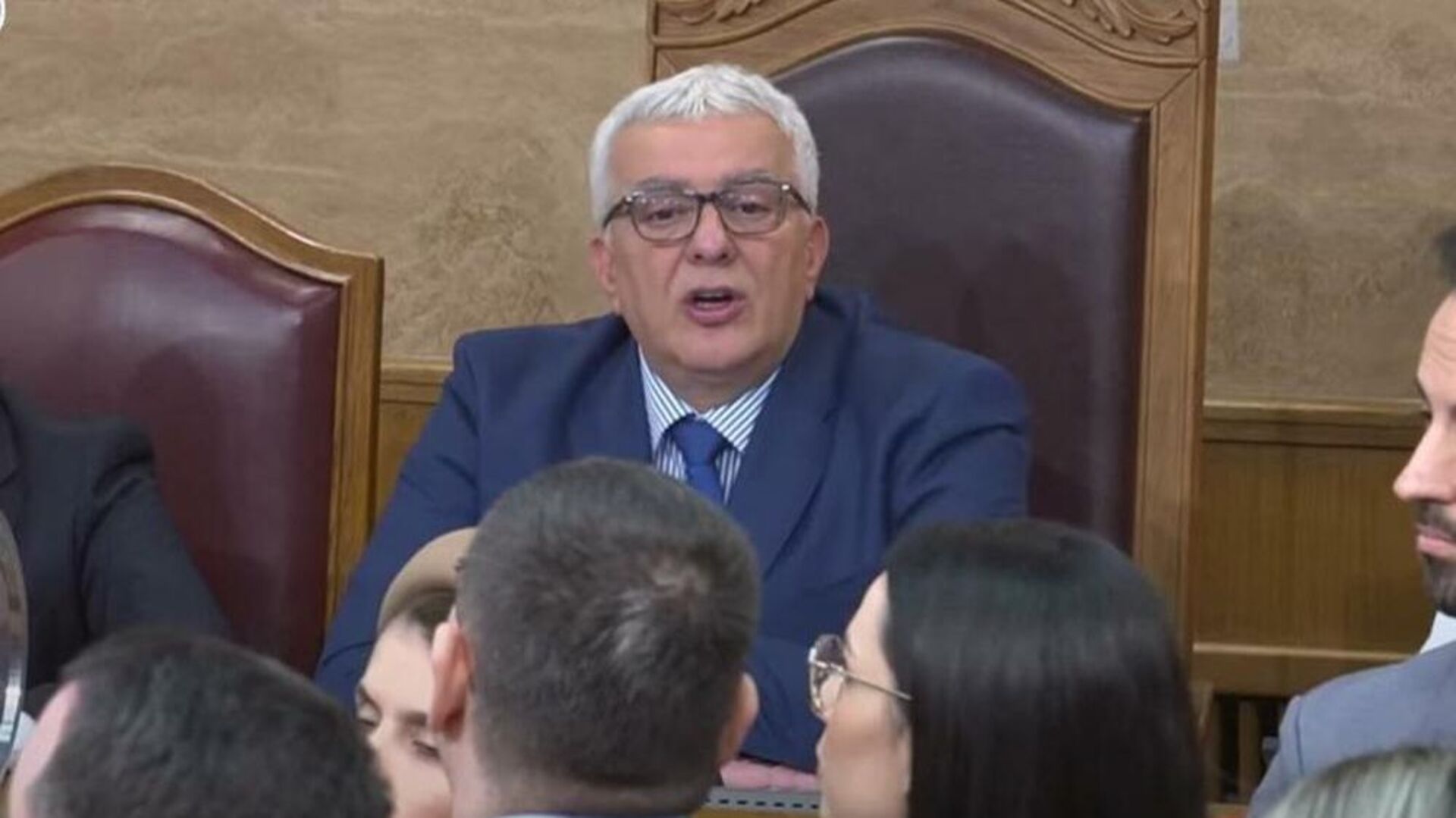 Opozicionari su stali ispred predsjednika Skupštine Andrije Mandića ne dozvoljavajući održavanje sjednice.