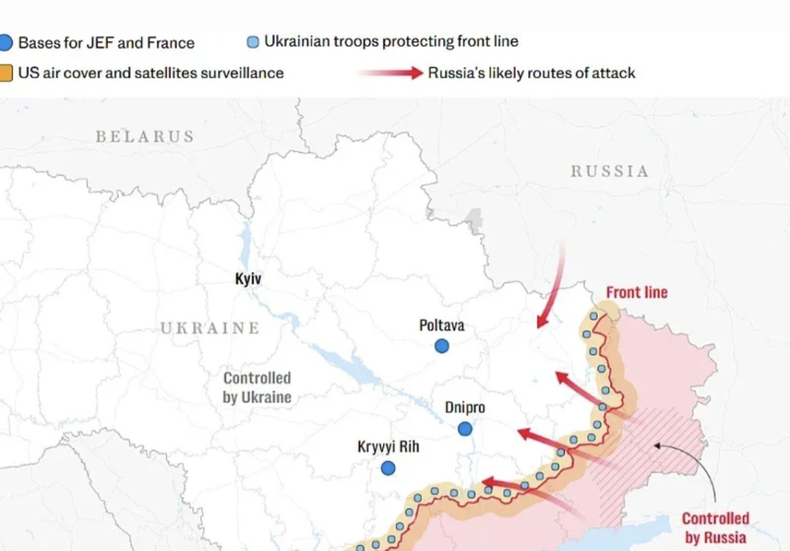 Prema anglo-francuskom planu, manje od 30.000 vojnika predvođenih Evropom bit će raspoređeno u ukrajinske gradove, luke i druga kritična infrastrukturna mjesta, poput nuklearnih elektrana, daleko od trenutnih linija fronta.
