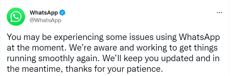 "Možda primjećujete neke probleme tokom korištenja WhatsAppa u ovom momentu.