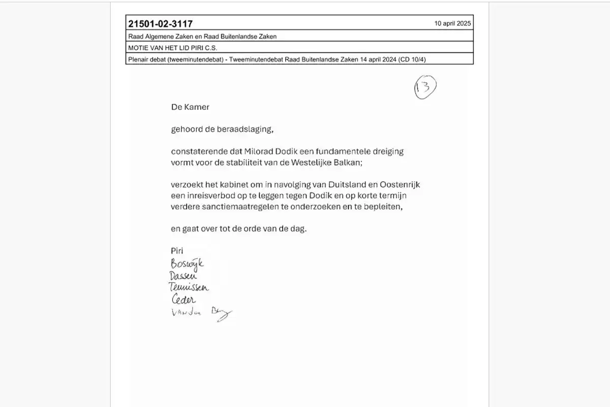 Naime, kako navode svjetski mediji ovaj zahtjev je učinjen na prijedlog parlamentarke Kati Piri iz parlamentarnog kluba GroenLinks-PvdA, smatrajući da predsjednik entiteta Rs-a predstavlja prijetnju po stabilnost zapadnog Balkana.