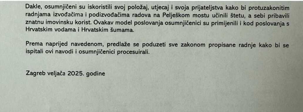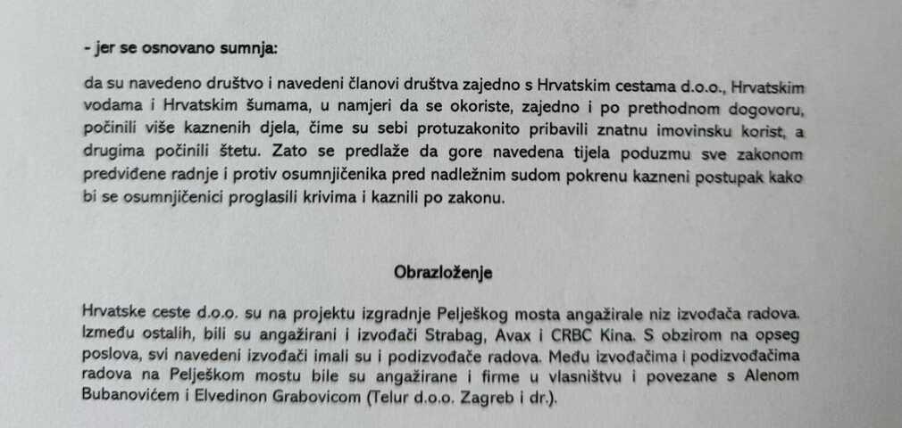 Iako službene institucije još nisu potvrdile ove navode, dostupni dokumenti ukazuju na moguće nepravilnosti u plaćanju izvođača i podizvođača radova na projektu Pelješkog mosta.