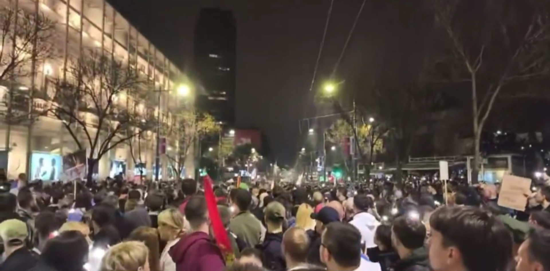 Na jednom od videa koji su na Mreži X objavili demonstranti veća grupa građana se pobjegla na krajeve ulice uslijed udara akustičnih talasa.