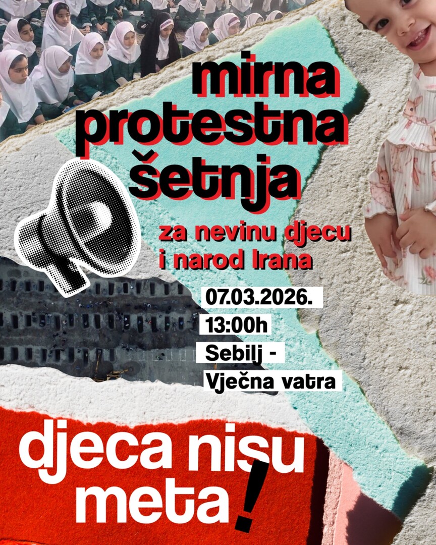 Policija Kantona Sarajevoi zabranila je održavanje javnog skupa podrške ubijeno djeci i civilama u Iranu koji je zakazan za sutra, dana 07.03.2026.godine, u 13:00h do 15:00h.