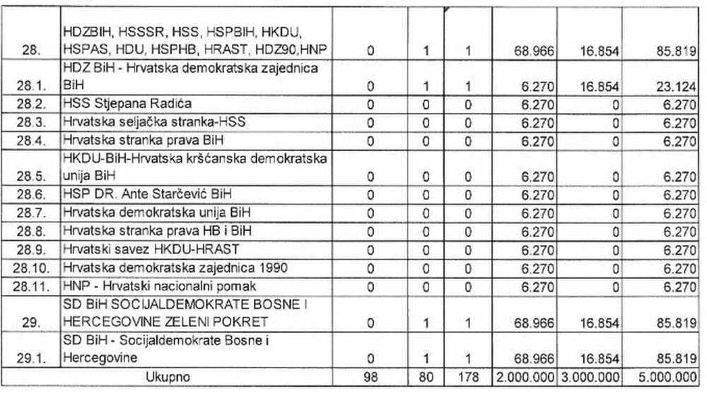 Političke stranke zastupljene u Parlamentu Federacije Bosne i Hercegovine ove će godine iz budžeta FBiH dobiti pet miliona KM.