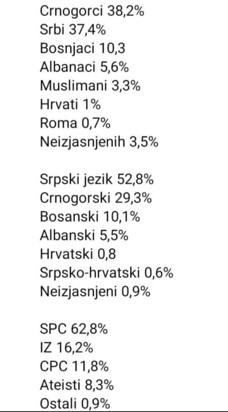 Naglašeno prosrpski i ekstremno desničarski portal Istok objavio je podatke o nacionalnoj strukturi stanovništva Crne Gore.