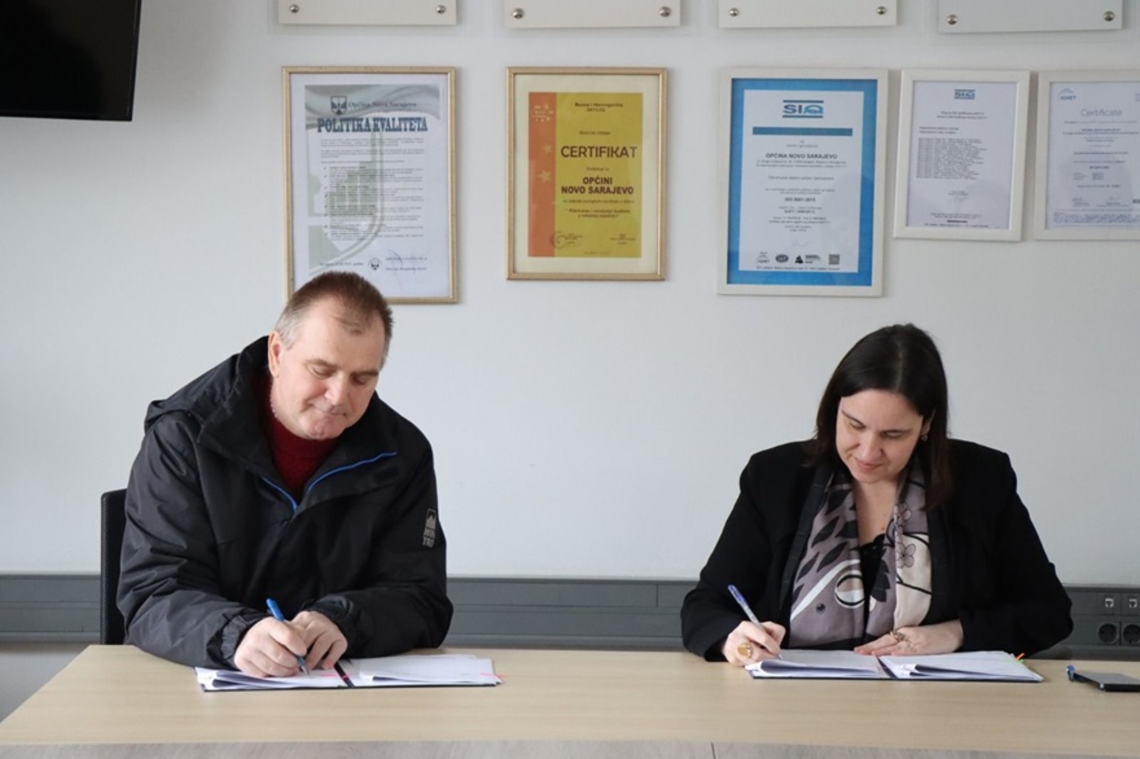 Ugovor su potpisali načelnica Općine Novo Sarajevo Benjamina Karić i direktor kompanije HETIG d.o.o. Sarajevo Suad Alić, a potpisivanju su prisustvovali i predstavnici etažnih vlasnika, kao i predstavnici Općinskog vijeća.