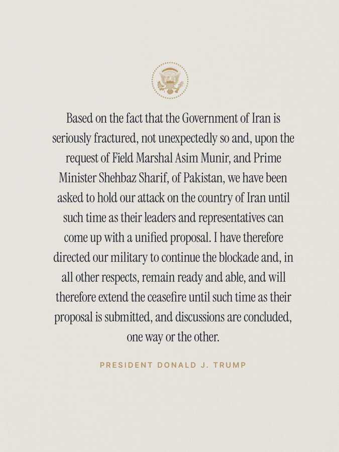 Predsjednik SAD-a Donald Trump rekao je da će produžiti primirje s Iranom dok Teheran ne dostavi svoj prijedlog i dok pregovori ne budu završeni.