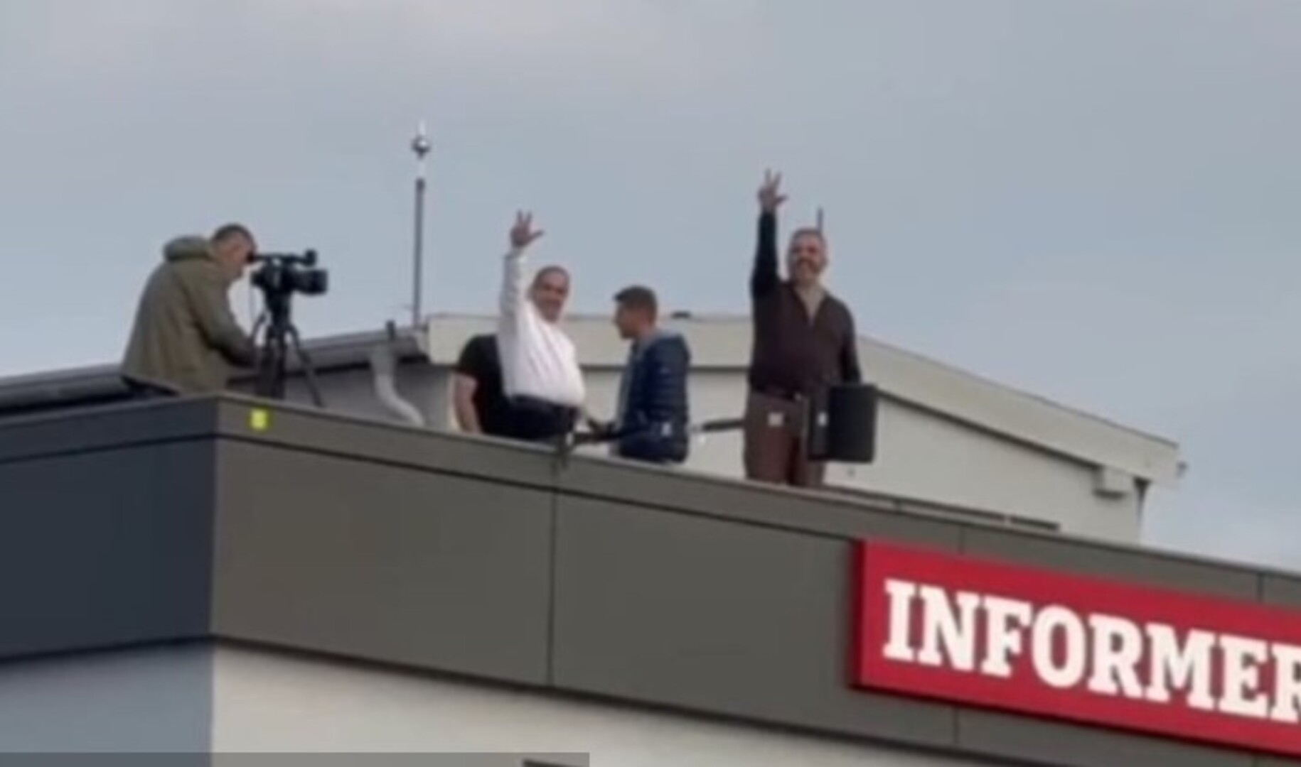 Tokom demonstracija, Vučićević je izašao na krov zgrade
