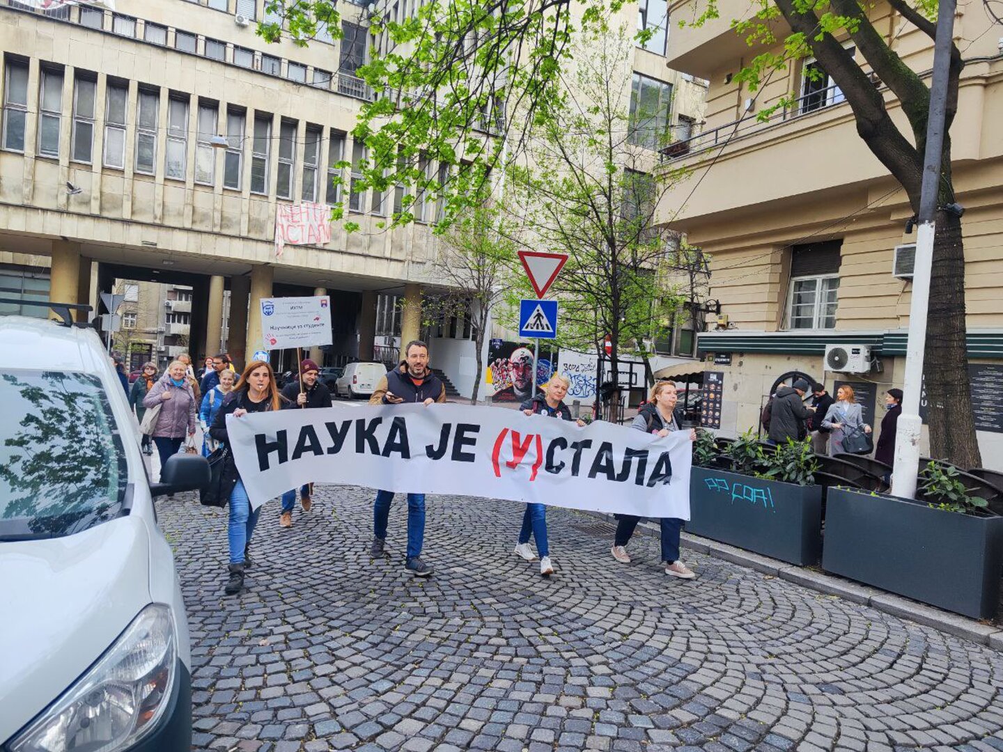 Studenti u blokadi stoje na ulici i šetaju, uprkos kiši koja je padala tokom noći i jutra, a kako su najavili zbog Velikog petka danas neće praviti buku pištaljkama i vuvuzelama.