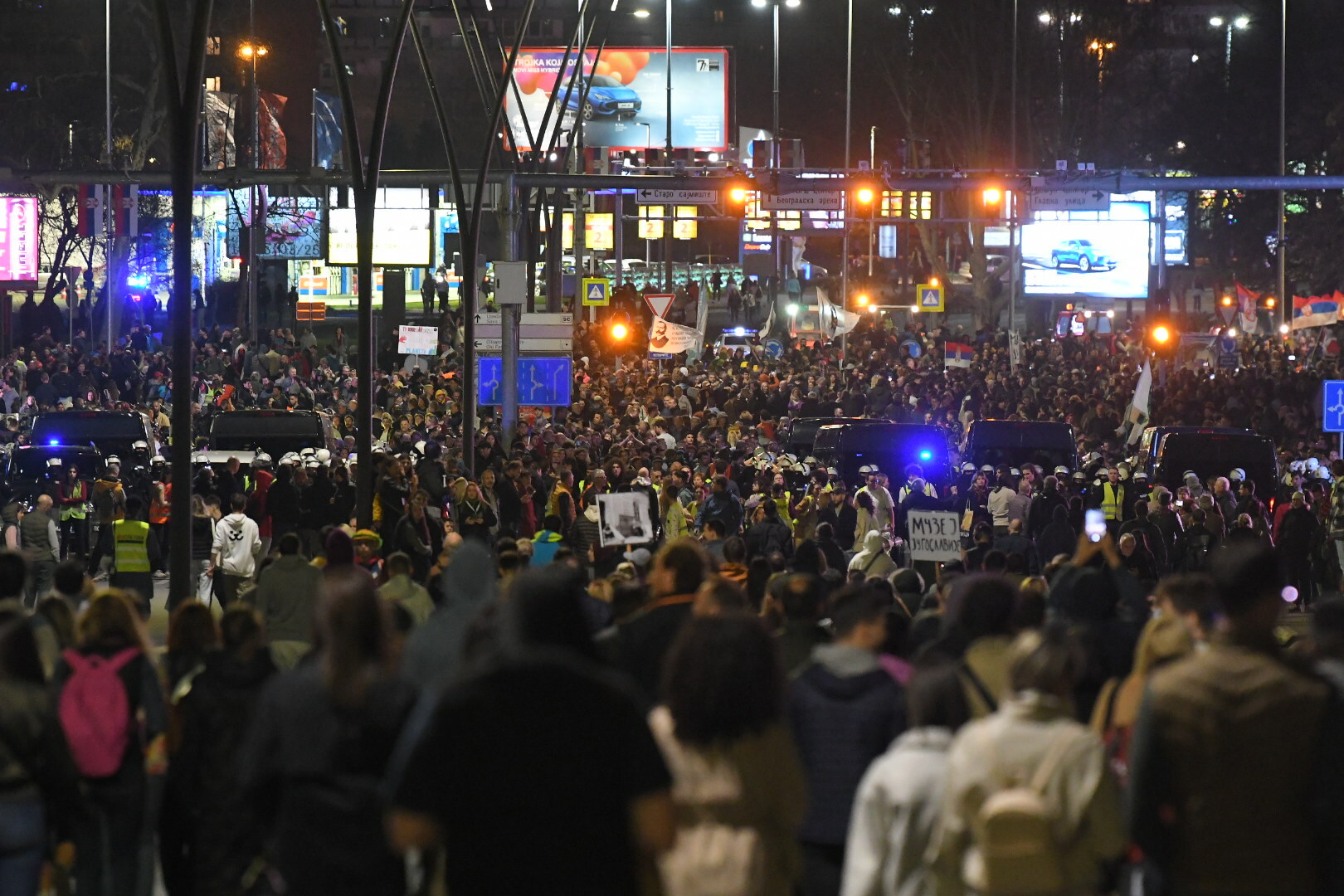 Nedaleko, na demonstracijama u Novom Beogradu masa je uzvikivala policiji "Uhapsite Vučića".