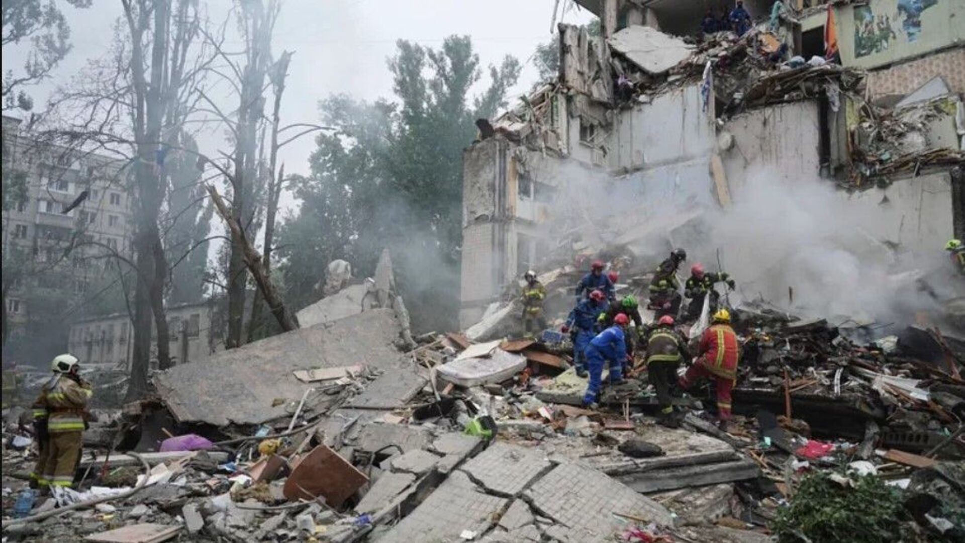 Od jutros su u toku operacije potrage i spašavanja na mjestu devetospratnice u Svjatošinskom okrugu, koju je pogodila ruska raketa.