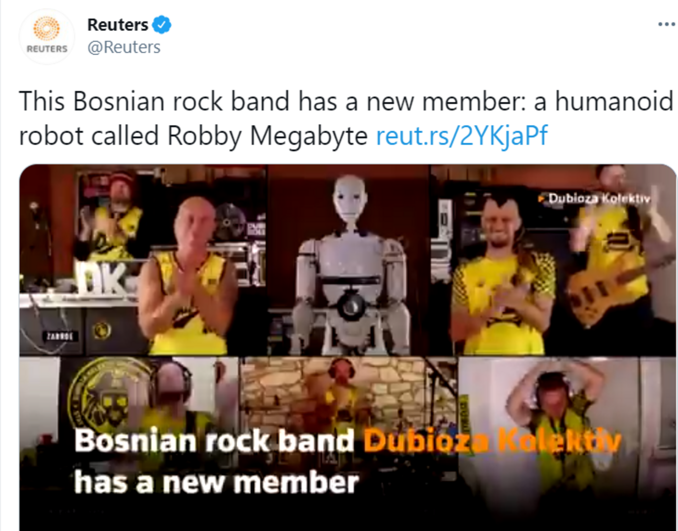 "Željeli smo biti ironični i zato smo pjevali - 'zla vještačka inteligencija oduzima posao dobrim ljudima'", kaže Mujagić za Reuters.