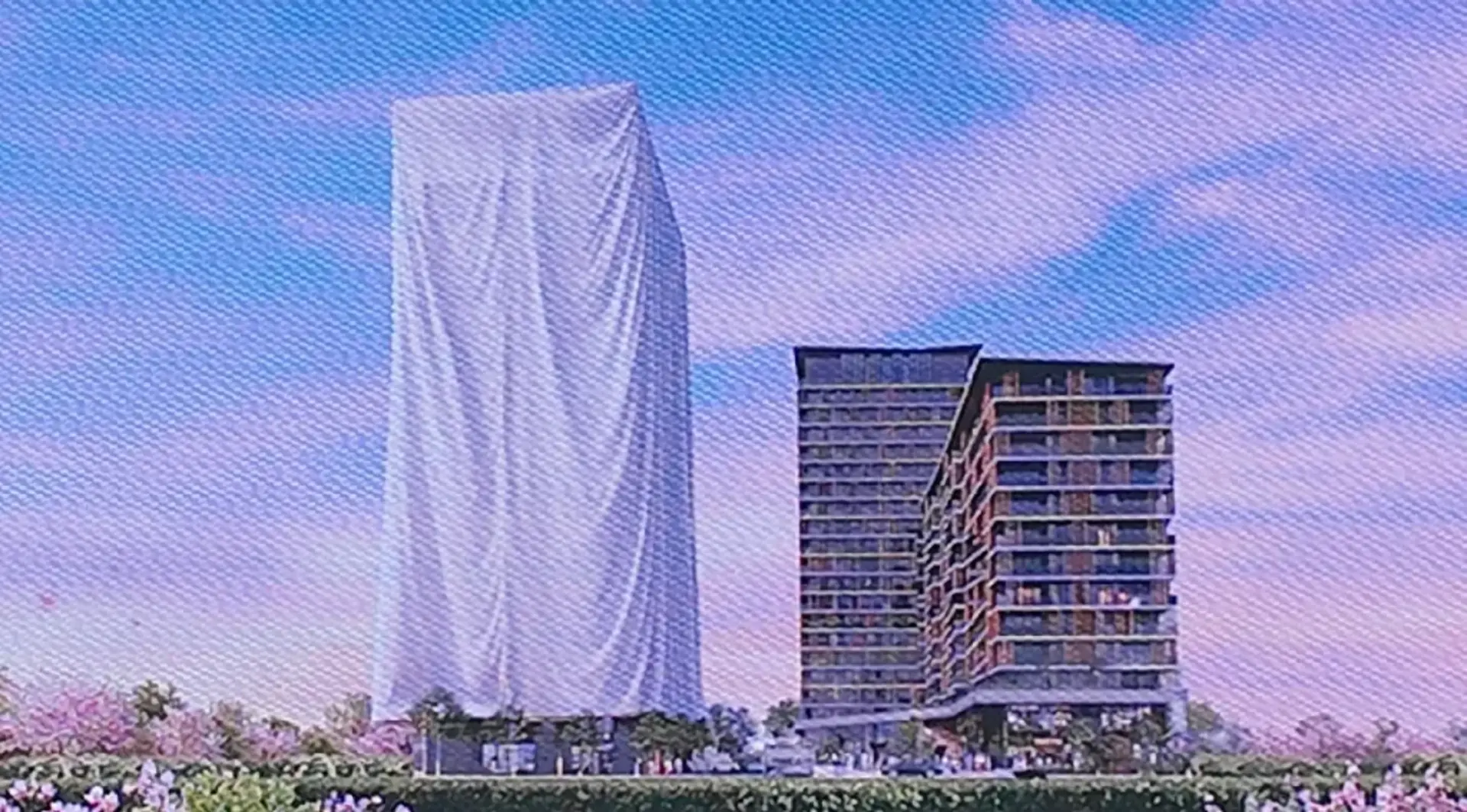 Na ilustraciji postavljenoj na kompleks u izgradnji vidi se postojeći objekat, ali i još jedna zgrada – skrivena ispod platna.