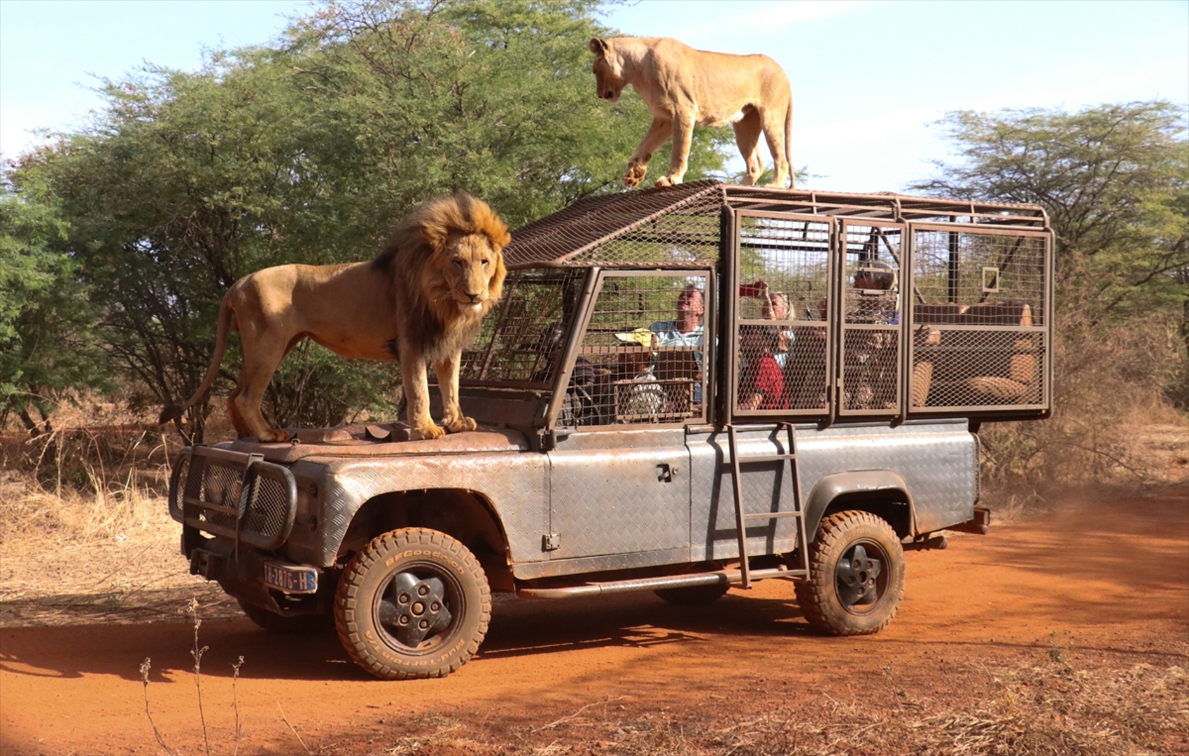 prerađenim vozilima, sjedeći u kavezu mogu izbliza vidjeti lavove koji se