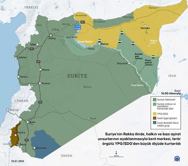 Sirijska vojska započela je ulazak u centar grada Rake, nakon što su lokalno stanovništvo i plemenske snage u velikoj mjeri preuzeli kontrolu nad gradom od terorističke organizacije YPG/SDG, objavila je turska novinska agencija Anadolija (AA), pozivajući se na vojne izvore. Prema istim izvorima, operacije sirijske vojske šire se i istočno od rijeke Eufrat, uz otvaranje novih frontova protiv YPG/SDG-a.