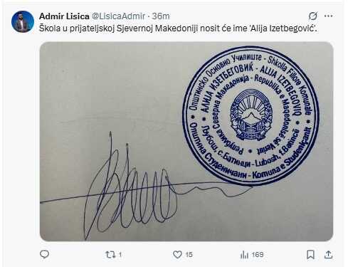 Jedna od osnovnih škola u Sjevernoj Makedoniji nositi će ime po prvom predsjedniku Republike Bosne i Hercegovine Aliji Izetbegoviću.