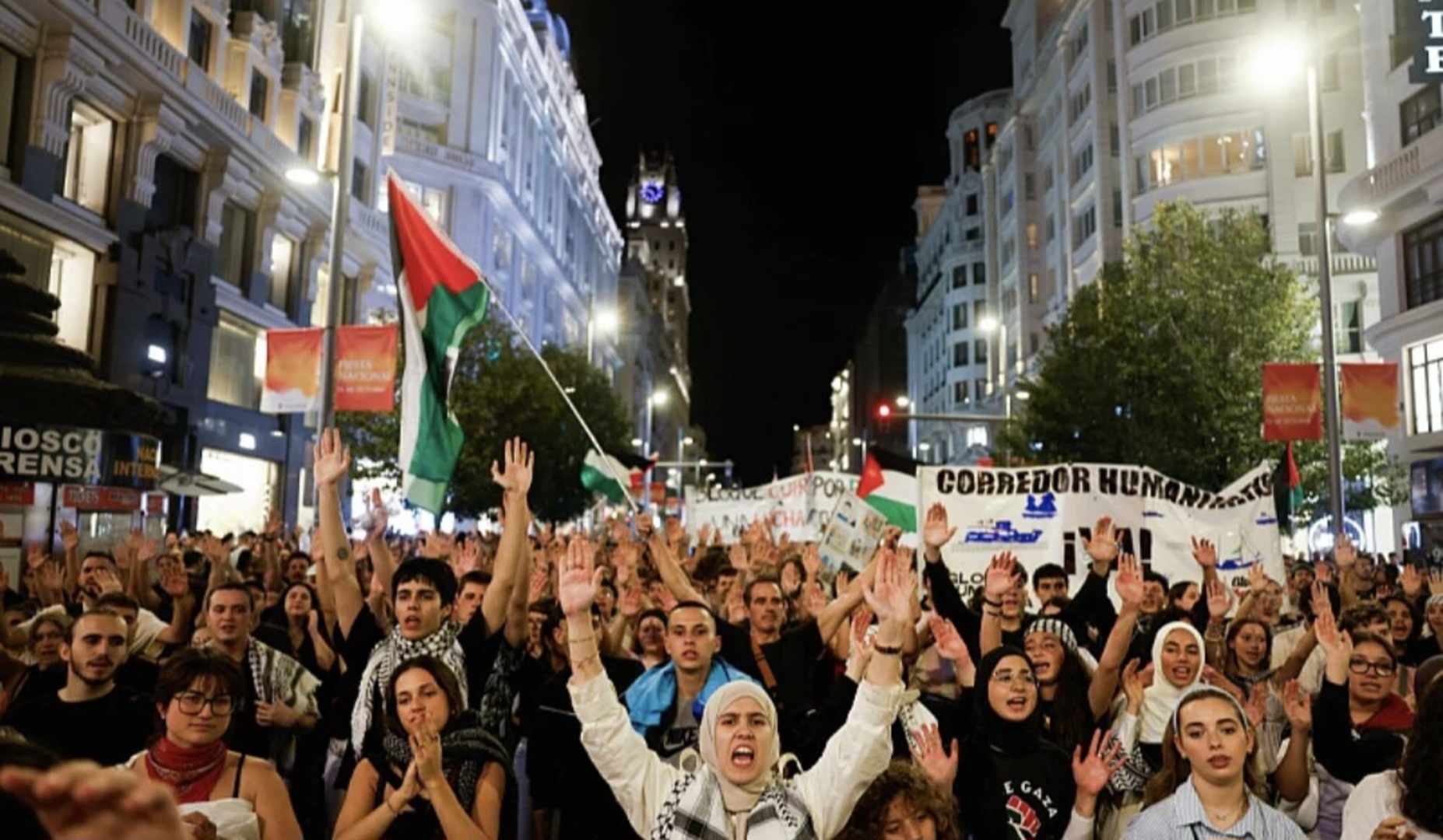 "Od Barcelone do Madrida, od Seville do Valladolica, od Pamplone do Logrona - ulice su bile obojene u zeleno, bijelo, crno i crveno, simbole palestinske zastave", piše El Pais.