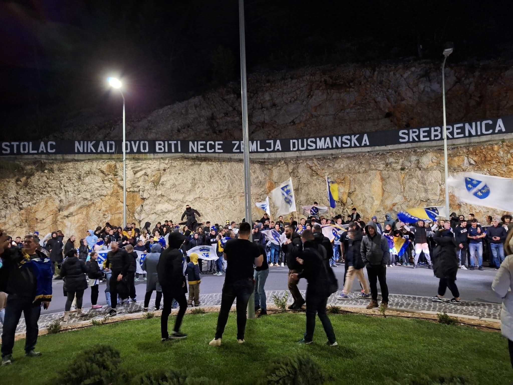 Okićeni zastavama Bosne i Hercegovine i Republike Bosne i Hercegovine, oni slave historijsku pobjedu reprezentacije Bosne i Hercegovine i plasman na Mundijal.