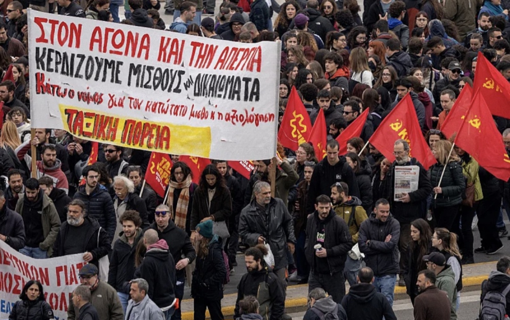Sindikat GSEE, koji predstavlja više od dva miliona radnika u privatnom sektoru, zahtijevaju odmah da se povećaju plate i obezbijede kolektivni ugovori o radu.