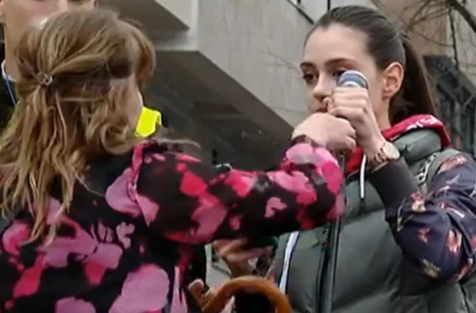 "Ovdje smo jer nećemo dozvoliti da dijelite otkaze zbog objava na društvenim mrežama, kao što ste do sada dijelili. ovdje smo jer više nećemo dozvoliti premještanje, ucjene, pritiske, kao što ih sada trpe radnici koji podržavaju studente. Draga Srbijo, ovdje smo jer smo predugo trpjeli, ali više nećemo", zaključila je studentkinja.