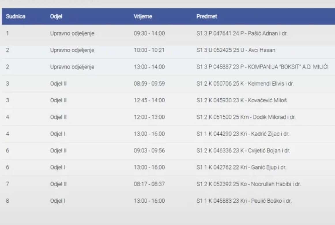 Ročište je u toku i počelo je u 12.00 sati, a informacije su službeno objavljene.