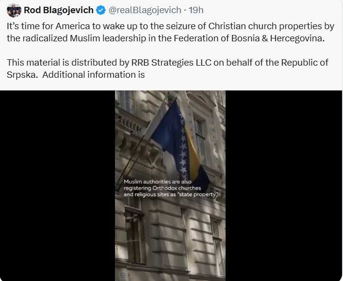 U završnom dijelu objave podsjetio je i na političku prošlost američkog političara Roda Blagojevicha, koji je podijelio sporni video.