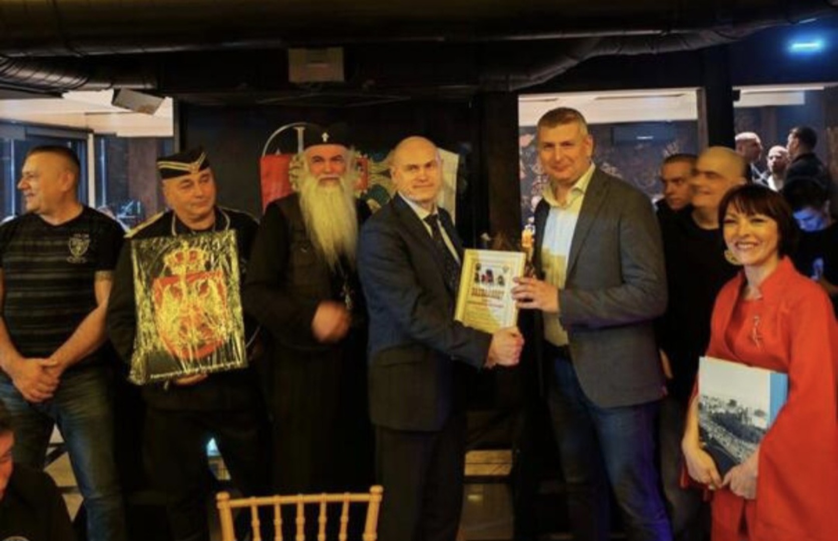Događaj je organizovalo udruženje "Srpsko-rusko bratstvo Sveti Arhangel Mihailo", koje promoviše saradnju Srbije i Rusije i čiji su članovi česti gosti ruskih diplomatskih institucija u Beogradu. Centralna figura večeri bio je arhimandrit Luka Babić, iguman manastira kod Srebrenice i potpredsjednik udruženja, poznat po vezama s proruskim i četničkim organizacijama.
