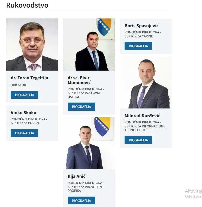 Ilija Anić i Milorad Đurđević su od 1. marta ove godine počeli raditi kao pomoćnici direktora za provođenje propisa (Anić), odnosno za informacione tehnologije (Đurđević), dok je, kako su nam kazali izvori iz UIOBiH, bila donesena odluka o postavljenju Borisa Spasojevića za pomoćnika direktora za carine, koji je u momentu imenovanja Anića i Đurđevića bio na sigurnosnim provjerama.