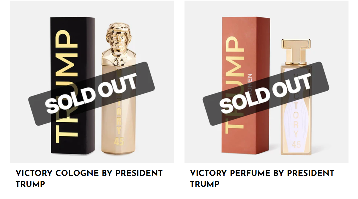 Zanimljivo je da se na istoj stranici može naći i informacija da je ranija serija Trumpovih parfema "Victory" rasprodata.