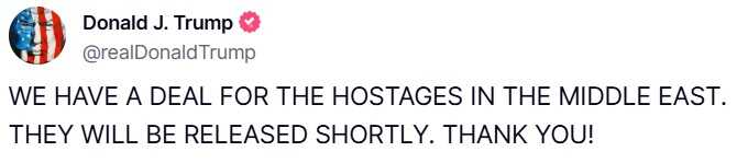 Novoizabrani predsjednik Sjedinjenih Američkih Država Donald Trump potvrdio je da je postignut sporazum između Hamasa i Izraela o primirju i razmjeni talaca i zatvorenika.