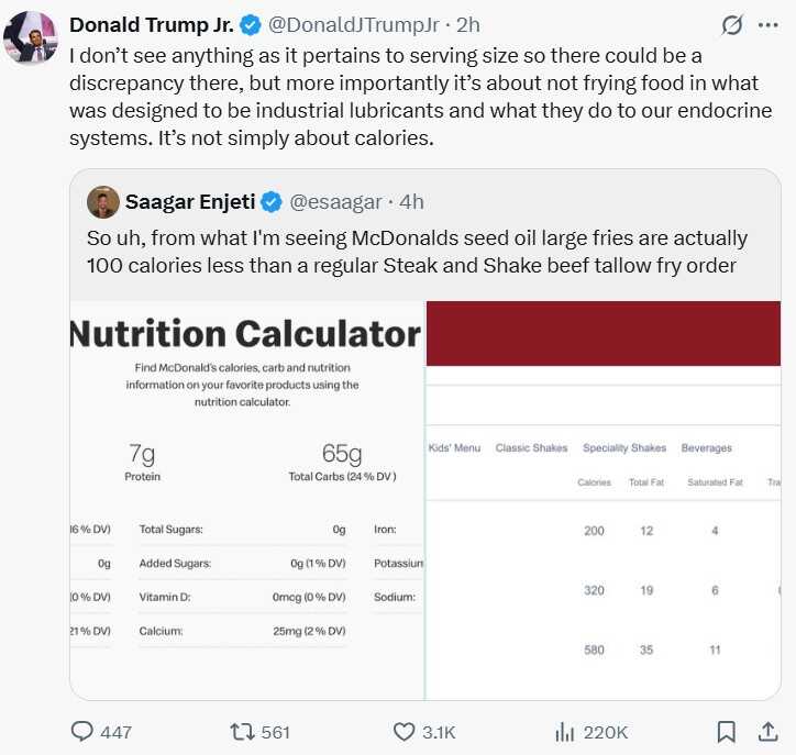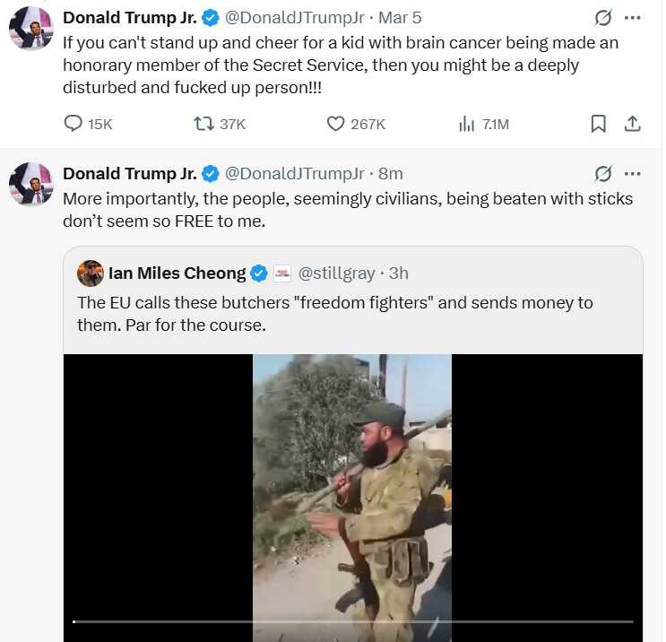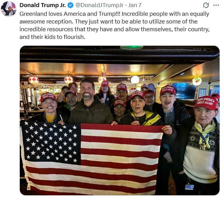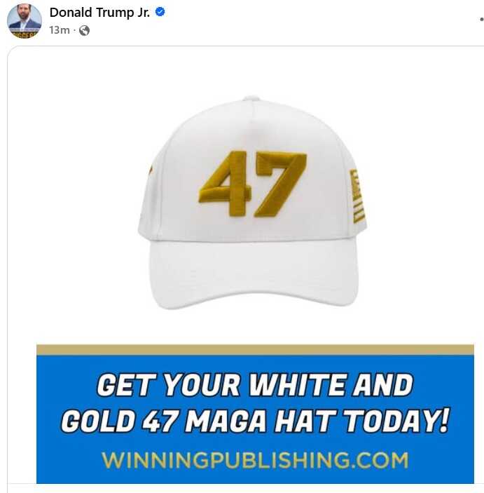 Na Facebooku je reklamirao kačket s izvezenim brojem 47. Njegov otac Donald je 47. predsjednik SAD.