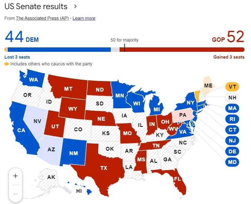 Oni sada u Senatu imaju 52 predstavnika. Demokrate su izgubile 3 mjesta u tom tijelu koje ima velike moći u procesu odlučivanja.