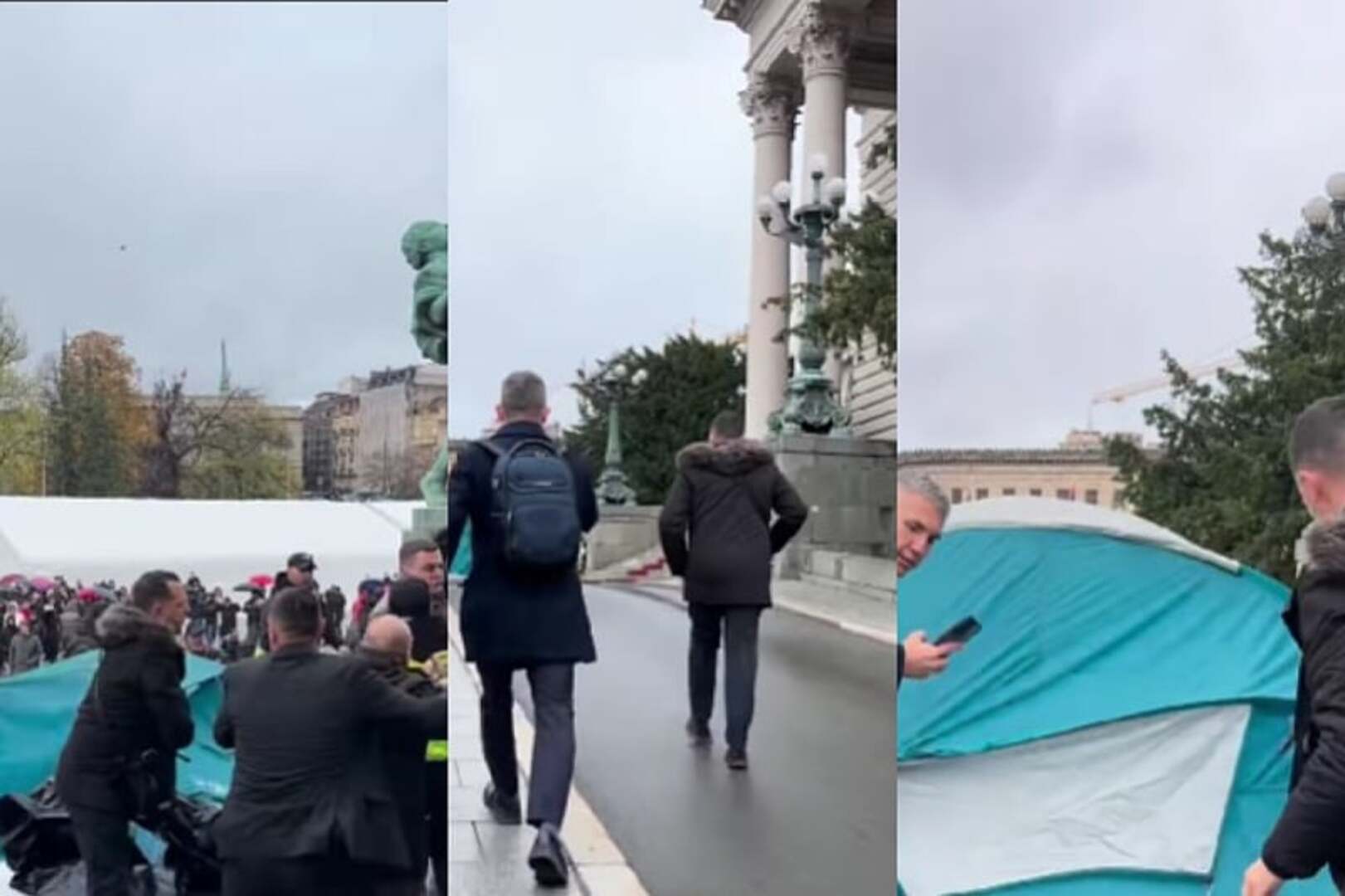 U jednom trenutku dvojica opozicionih poslanika pokušala su ukloniti šator koji se nalazi na stepeništu i koji, tvrde, onemogućava poslanički ulaz. Tada je došlo do fizičkog sukoba između njih i grupe muškaraca iz kampa, nakon čega je policija intervenirala.