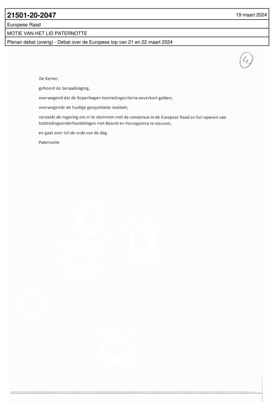 U Parlamentu Nizozemske postoje ukupno 3 prijedloga za početak 🇪🇺 pristupnih pregovora sa Bosnom i Hercegovinom.