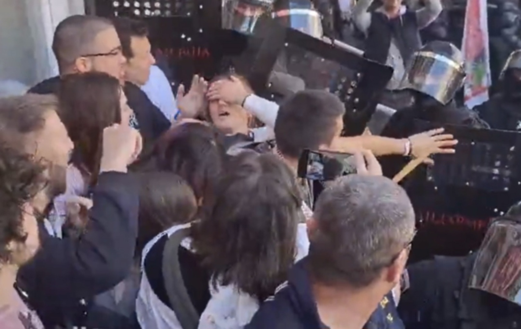 Vidi se da studentica stoji ispred policije koja ju udara u glavu. Čuju se povici: "Stani, stani, djevojka, djevojka", a Kristina pada na tlo vrišteći.