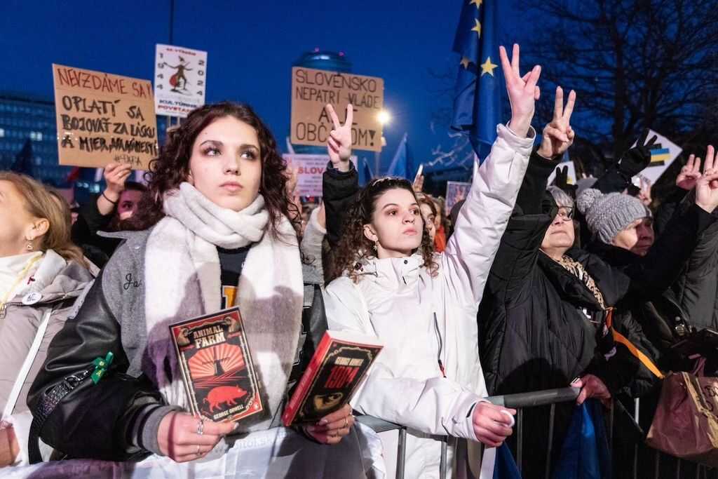 Protest u Bratislavi protiv politike premijera Roberta Fica i za podršku Ukrajini, 10. januar 2025.