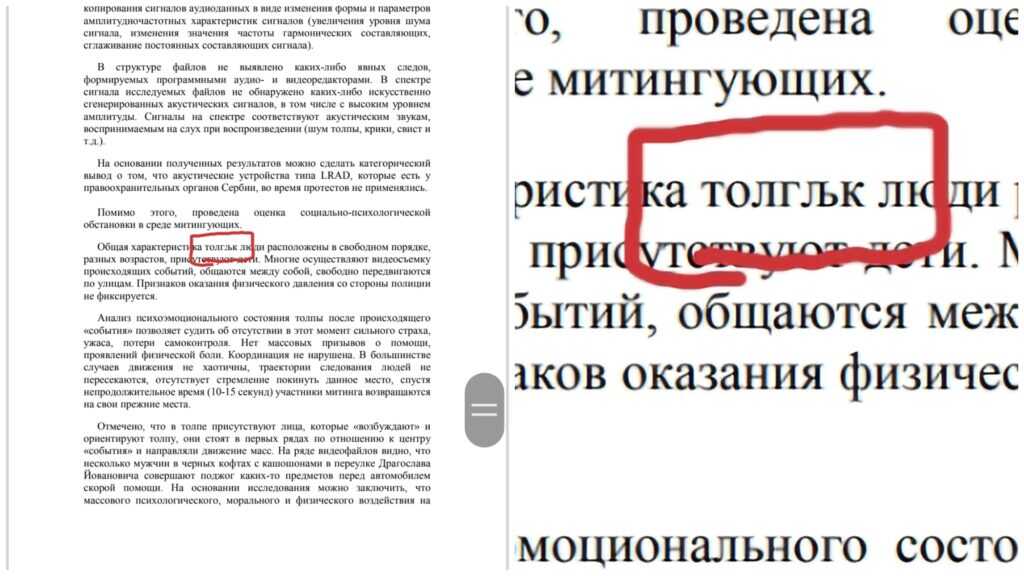 Iz vlasti tvrde da je na naučni način dokazano da nikakvo akustično sredstvo koje poseduje MUP Srbije nije korišteno, a ne treba mnogo da bi se utvrdilo da "dokument" ima političku konotaciju te stoga je njegova objektivnost i vrednost upitna. Već u drugoj rečenici piše: