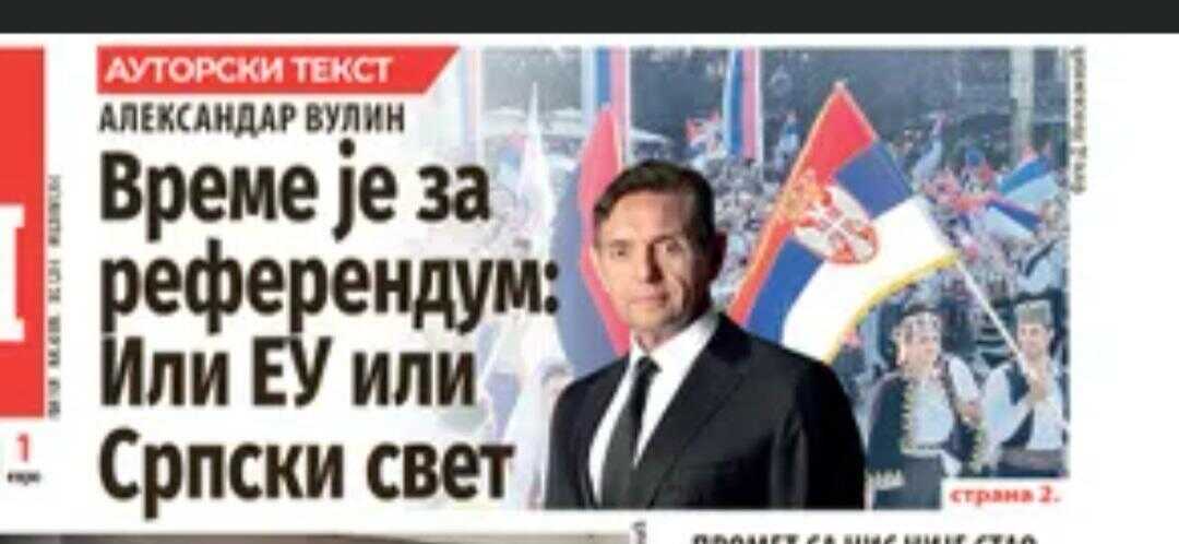 Smatra da "o ključnom spoljnopolitičkom pravcu treba odlučiti narod na obavezujućem referendumu s jasnim pitanjem: Evropska unija ili srpski svit".