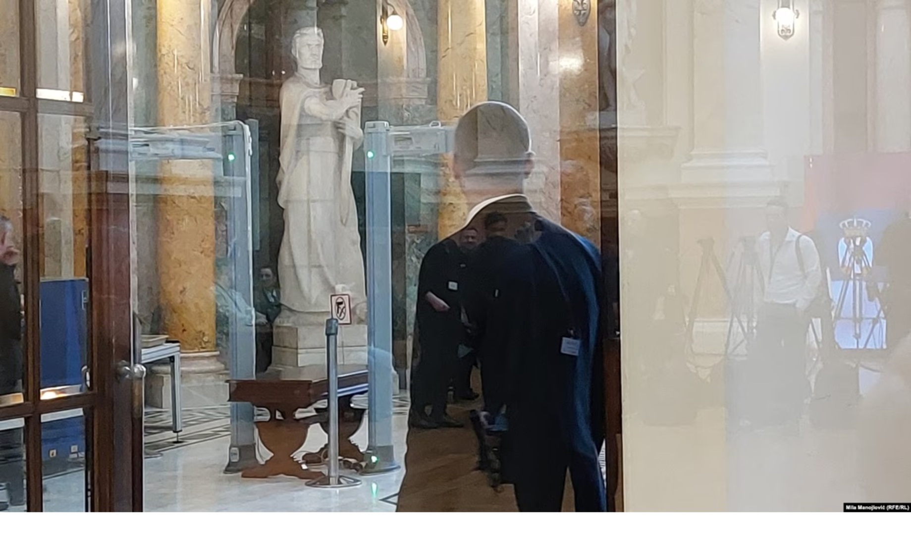 Na ulazu u Skupštinu je pojačano obezbjeđenje, kako za poslanike, koji ulaze na glavni ulaz, tako i za novinare, koji ulaze na službeni ulaz, javila je reporterka RSE.